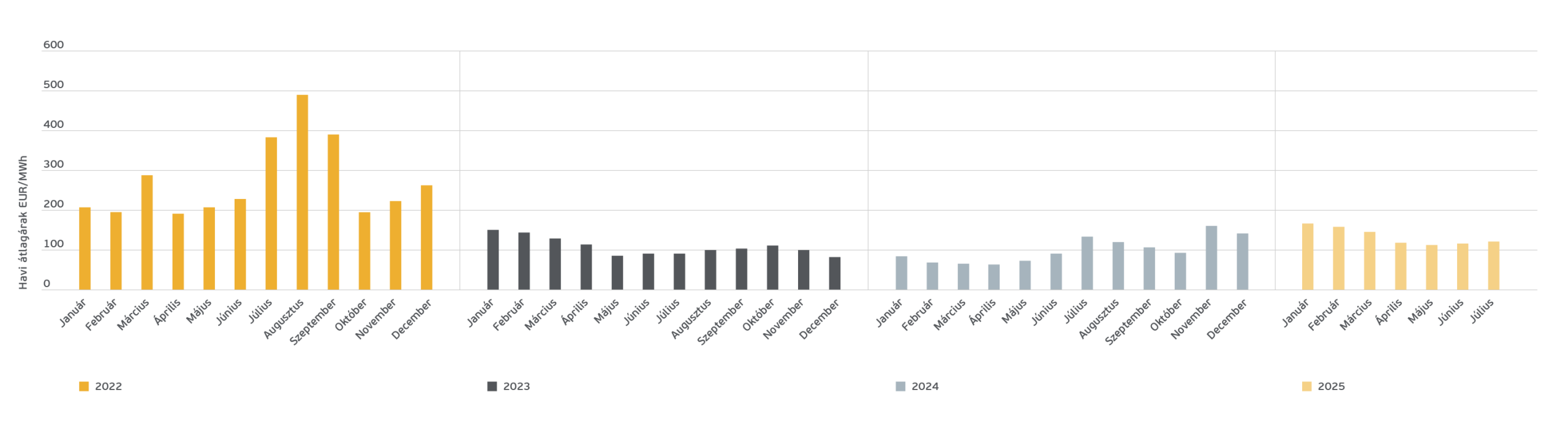 A konstrukció a világpiaci árakat követi, így a havi számlákban szereplő egységár minden hónapban változik. Az alábbi diagramok azt mutatják meg, hogy az elmúlt időszakokban hogyan alakultak a villamos energia piaci árai.